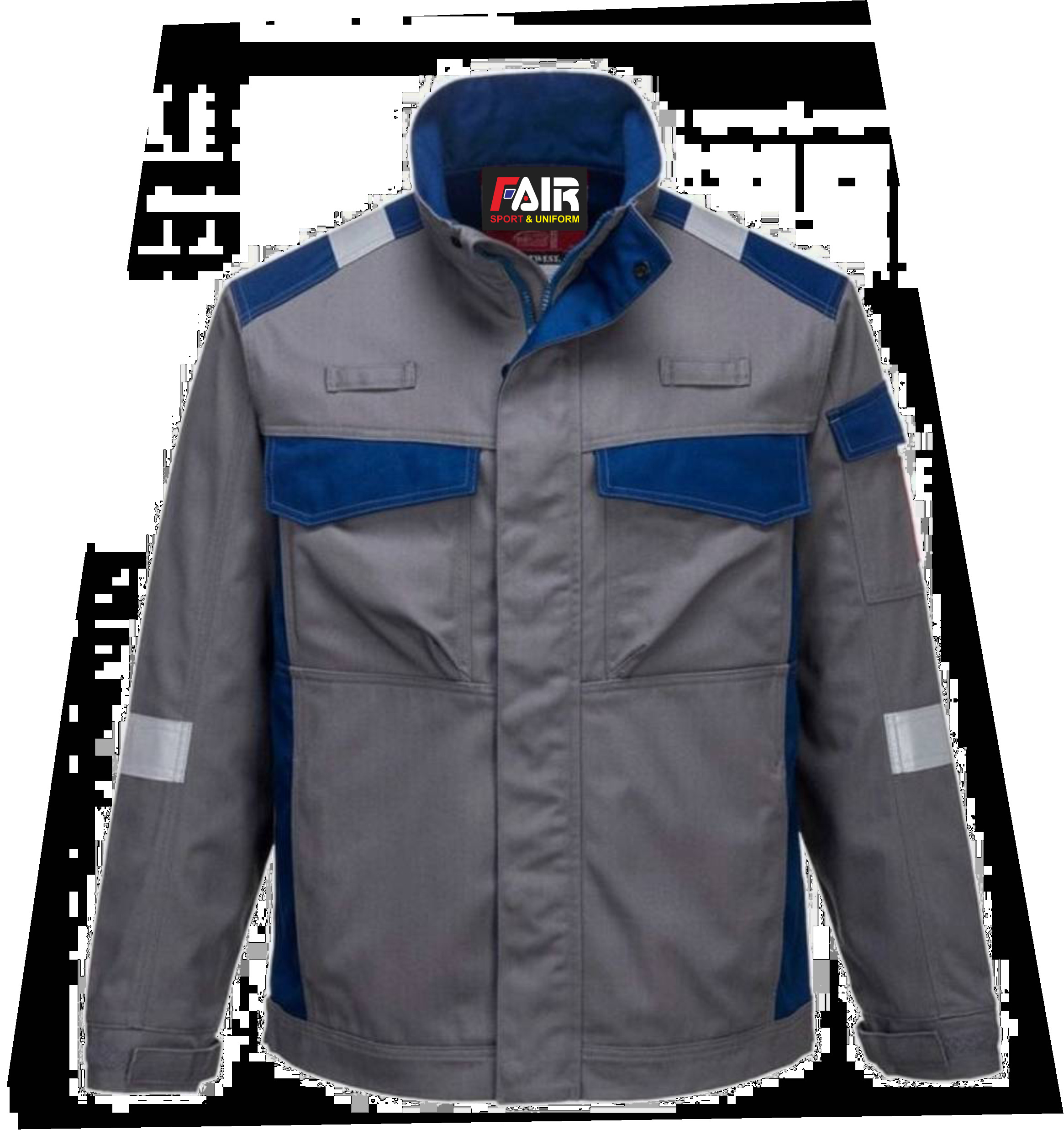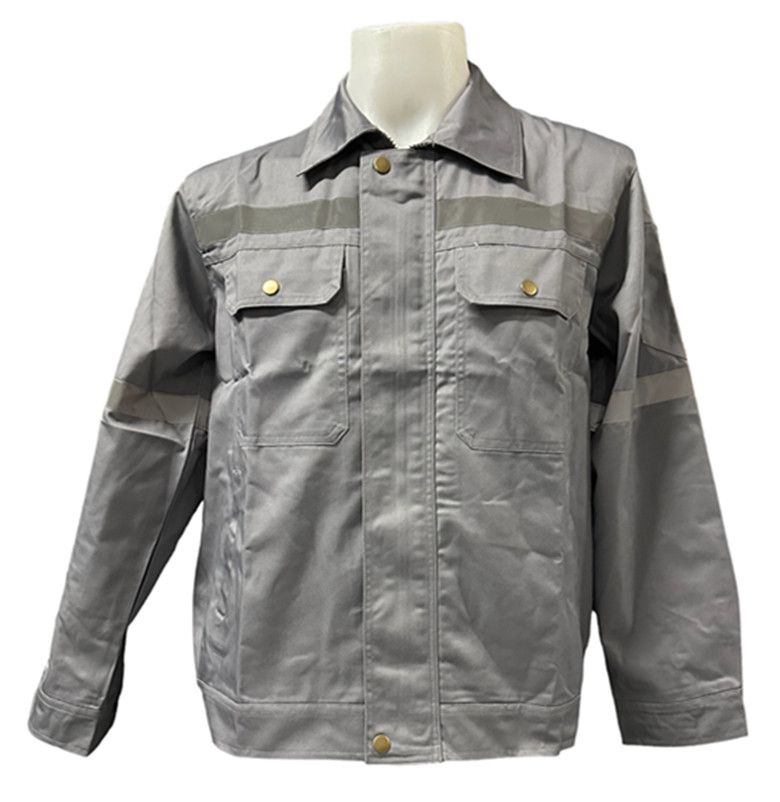ลักษณะ: แจ็คเก็ตช่างมาตรฐาน ผ้าหนา แข็งแรง มีกระเป๋าหน้าอกสองข้าง ปิดด้วยกระดุม และเสริมแถบสะท้อนแสงเพิ่มความปลอดภัย